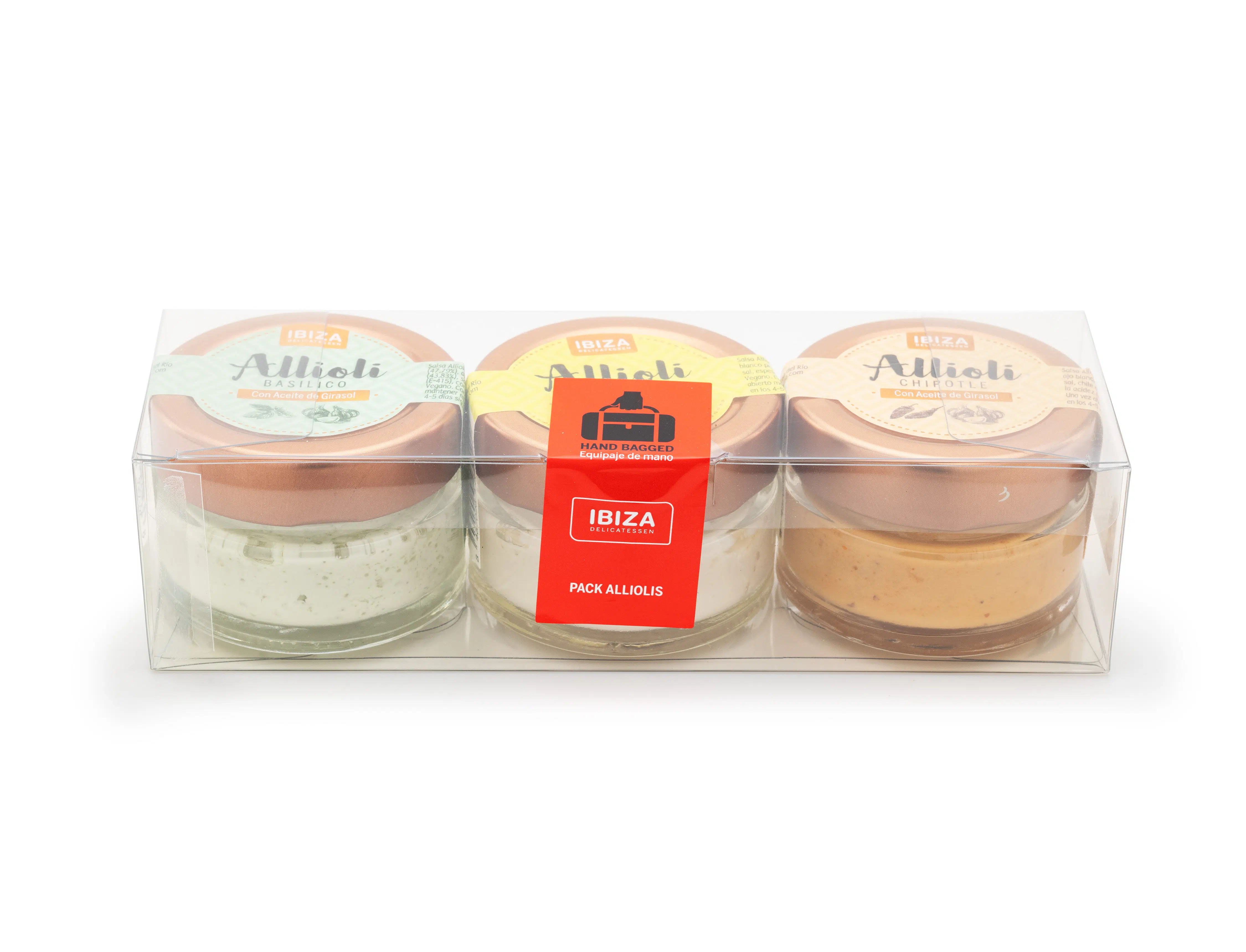Een ambachtelijke allioli zoals van oudsher, volledig plantaardig en bereid zonder koeling tot het moment van openen. Verkrijgbaar in drie verfijnde smaken—klassiek, basilico of pittig chipotle—en verpakt in stijlvolle glazen potjes met gouden deksel. Perfect om als smaakmaker toe te voegen of gewoon als culinaire ervaring op tafel te zetten. Ze worden ook verkocht als pakket van 3.